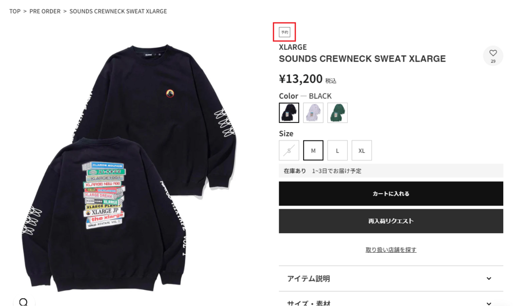 予約商品も商品ページ上では「在庫あり」と表示されますが、こちらは予約可能な在庫数があることを示しております。