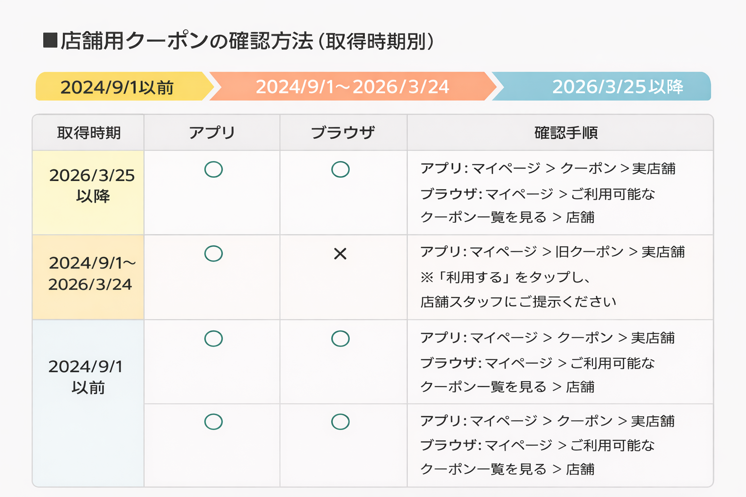■店舗用クーポン 確認方法