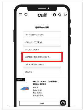 返送理由は「注文明細と異なる商品が届いた」をお選びください。