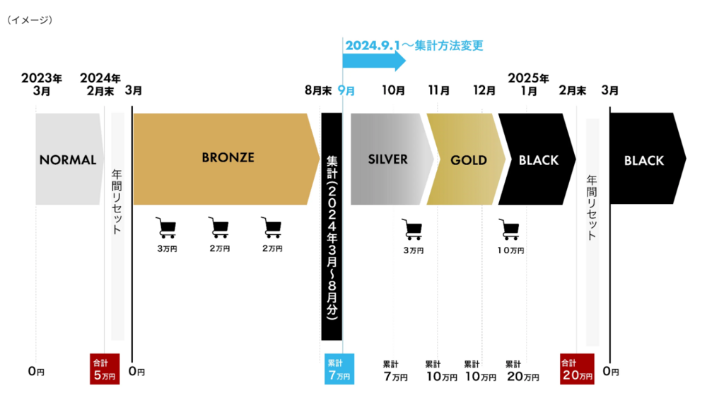 ご購入金額に応じて設定されるステータスのランクアップ周期が、2024年9月より年間→即時※へ変更となりました✨