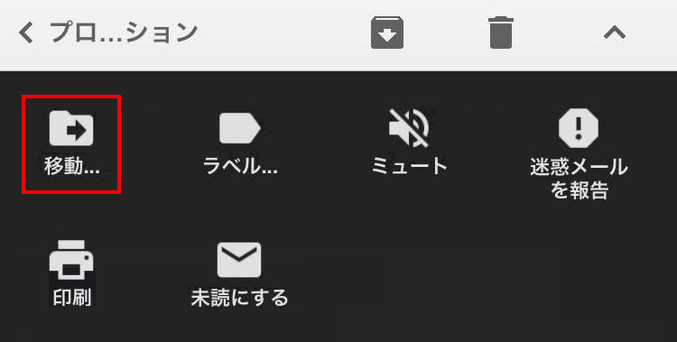 プロモーションタブ内のメールを一度開き、右上の逆三角マークをタップします。